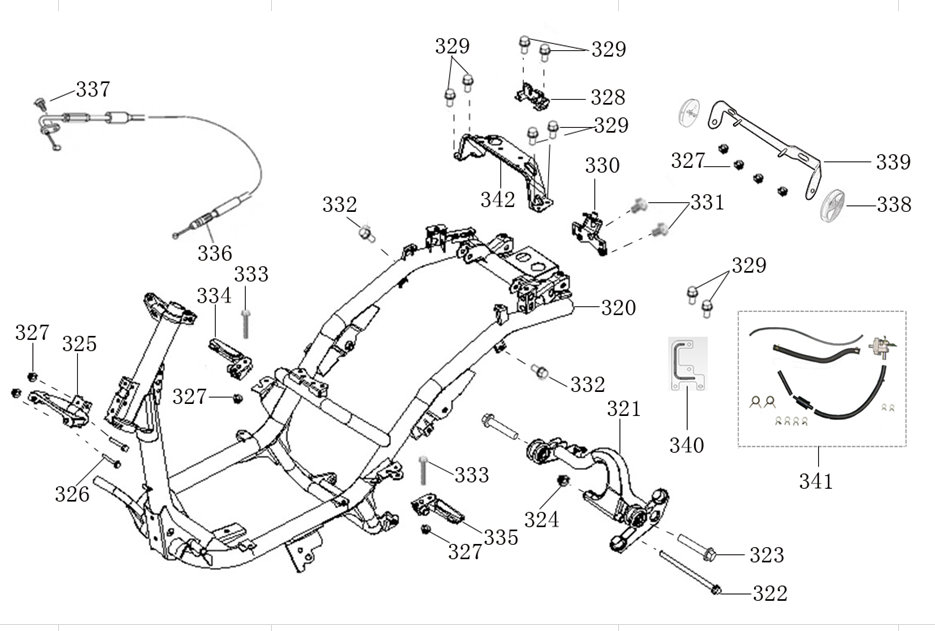 Right Pillion Footpeg with Bracket for WY125T-121, WY50QT-110, WY125T-121-E4