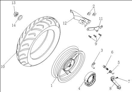 Rear Black Wheel 10 x 2.50inch (Drum Brake) for LJ50QT-3L, LJ50QT-5L, LJ50QT-9L-E5