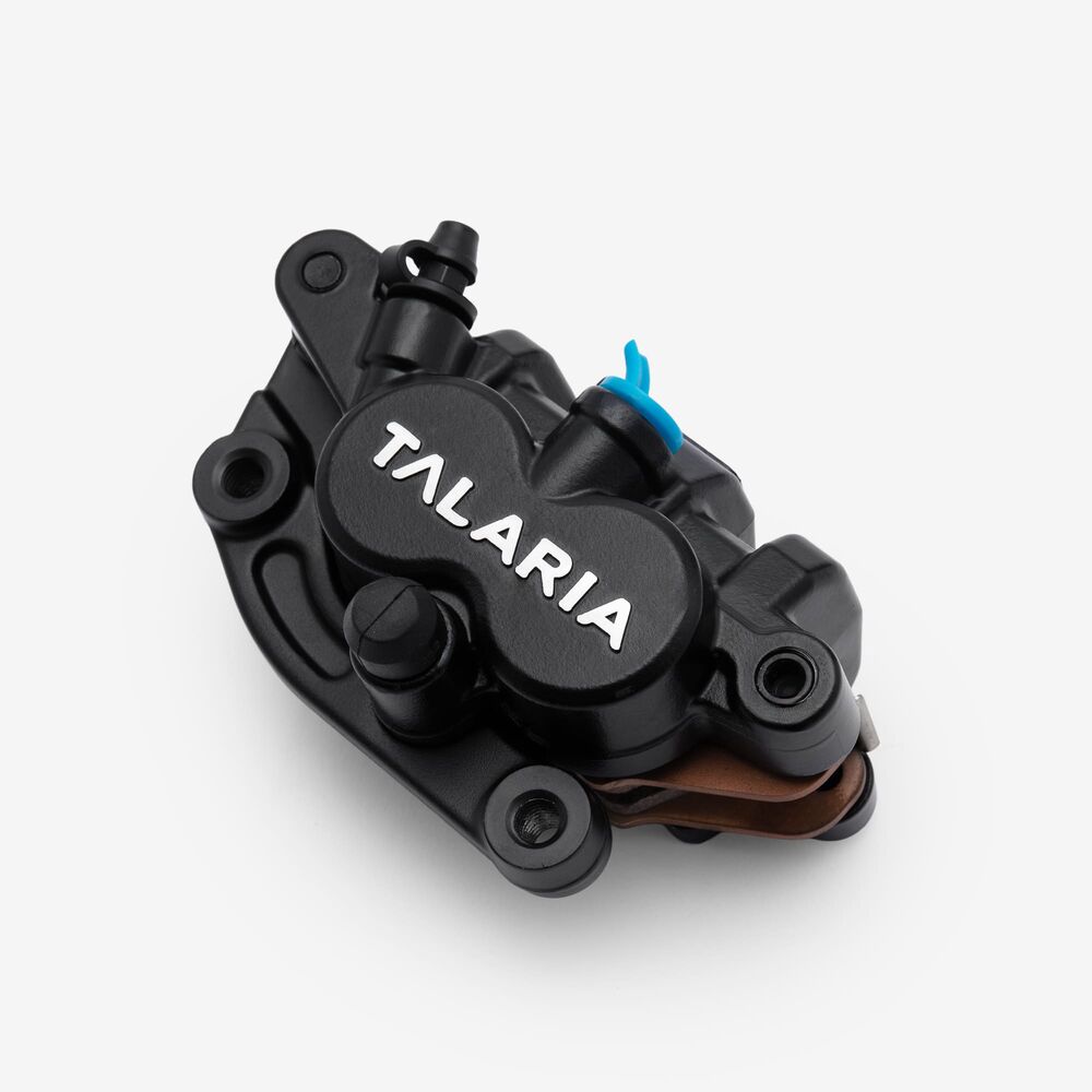 Squeezing the brake lever pushes a hydraulic piston, which sends fluid down the brake lines and into the caliper.