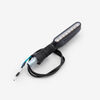 The indicator on a motorcycle is a signaling device used to communicate the rider's intent to turn or change lanes. It typically consists of a light that flashes to alert other road users. Mounted on the front and rear of the bike, indicators are essential for safety, helping to ensure that the rider's movements are clearly visible to others.