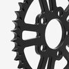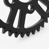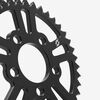 The rear sprocket on a motorcycle is a key component of the drivetrain system, located on the rear wheel hub. It works in conjunction with the front sprocket and the chain to transmit power from the engine to the rear wheel, propelling the motorcycle forward. The rear sprocket features a series of teeth that mesh with the chain, and its size affects the motorcycle’s gearing and performance characteristics. A larger rear sprocket increases torque and acceleration, while a smaller one improves top speed and fuel efficiency. Proper maintenance and alignment of the rear sprocket are essential for optimal drivetrain performance and safety.