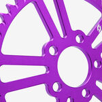 The rear sprocket on a motorcycle is a key component of the drivetrain system, located on the rear wheel hub. It works in conjunction with the front sprocket and the chain to transmit power from the engine to the rear wheel, propelling the motorcycle forward. The rear sprocket features a series of teeth that mesh with the chain, and its size affects the motorcycle’s gearing and performance characteristics. A larger rear sprocket increases torque and acceleration, while a smaller one improves top speed and fuel efficiency. Proper maintenance and alignment of the rear sprocket are essential for optimal drivetrain performance and safety.