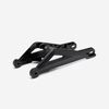 The swingarm is a key component of a motorcycle's rear suspension system. It connects the rear wheel to the motorcycle’s frame and allows the wheel to move up and down independently of the chassis. This pivoting action absorbs shocks and maintains stability, improving ride comfort and handling. The swingarm is typically made from aluminum or steel for strength and durability. It is mounted on the motorcycle's frame with a swingarm spindle or axle and is linked to the rear suspension system via a shock absorber or linkage.